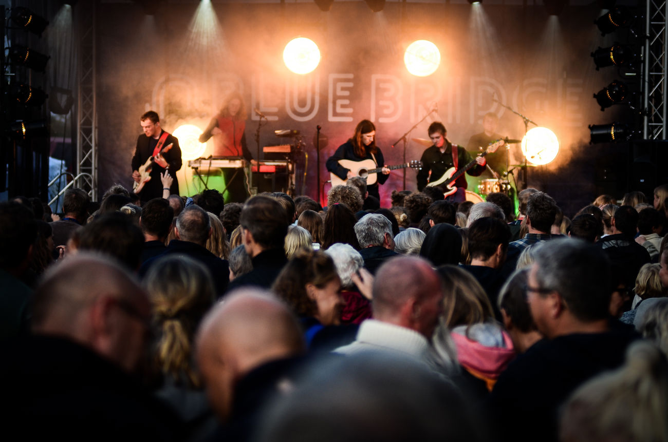 Blue Bridge giver 12 timers musik med alt lige fra lokale amatørbands og upcomings med ny original musik til verdensmusik og kendte kunstnere.